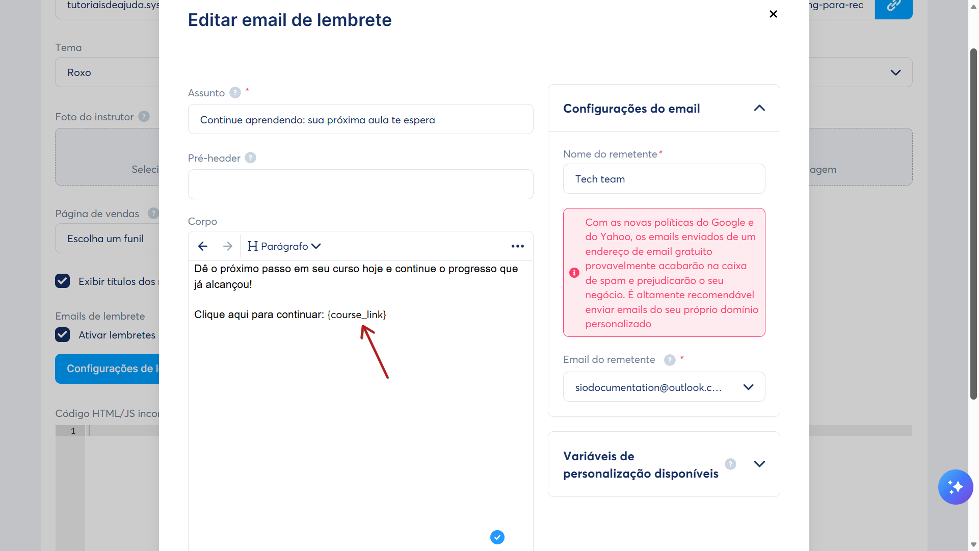Este artigo explica como configurar emails de lembrete automáticos para ajudar os alunos a concluírem seus cursos. Com este recurso, os lembretes podem ser enviados com base no comportamento e progresso do aluno, permitindo controle total sobre o tempo, a frequência e o conteúdo da mensagem.