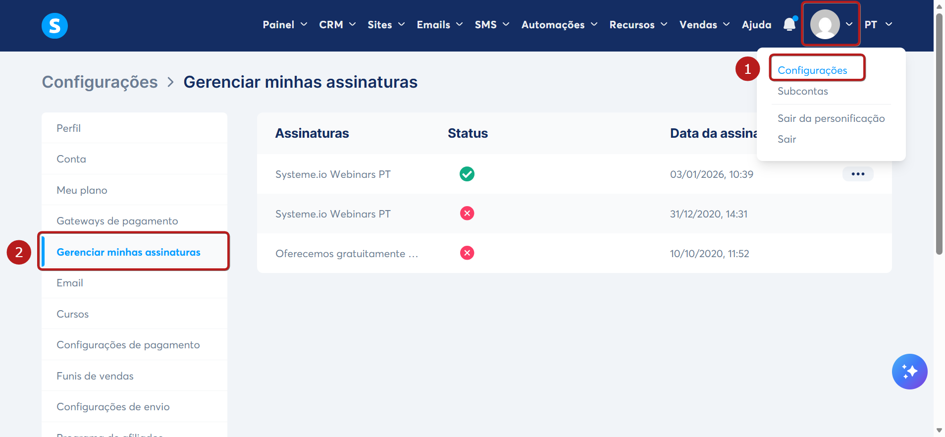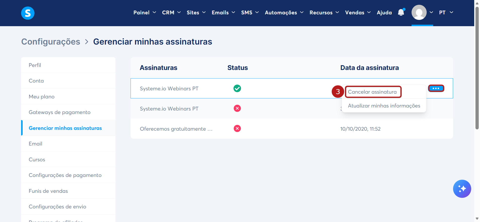 Como cancelar uma assinatura da systeme.io ou uma oferta hospedada na systeme.io