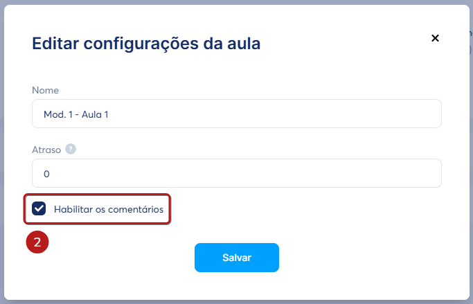 No pop-up que será exibido, marque a opção Habilitar os comentários (2).