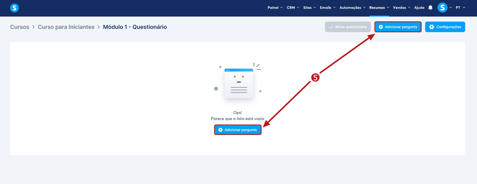 Para começar a criar as perguntas do questionário, clique em Adicionar pergunta (5).