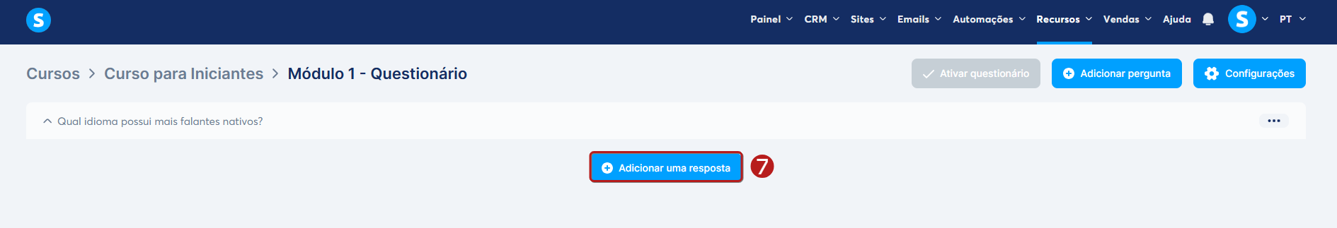 Adicione respostas para sua pergunta, clicando em Adicionar uma resposta (7).