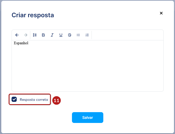 Caso contrário, se a resposta é a correta, selecione a caixa Resposta correta (11).