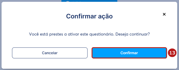 NO pop-up que será exibido, clique em Confirmar para ativar o questionário (13).