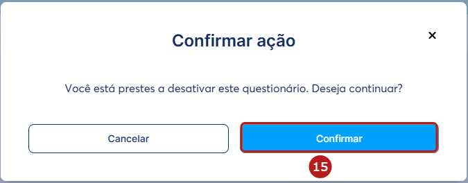 No pop-up que será exibido, clique em Confirmar para desativar o questionário (15).