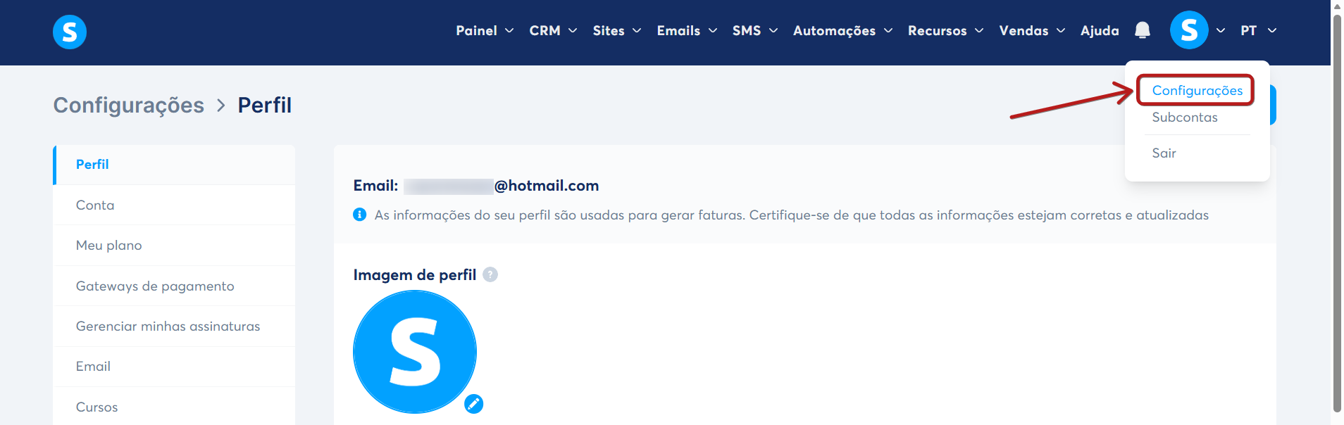 - Role o menu à esquerda até a seção Integrações e clique nela.