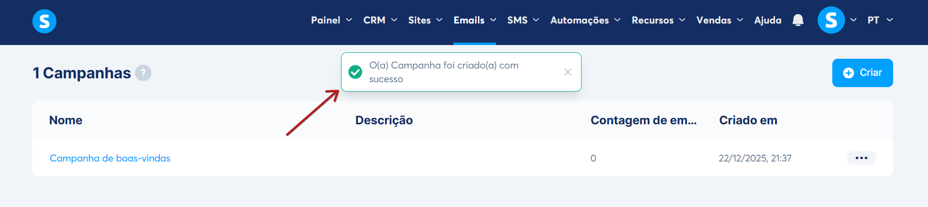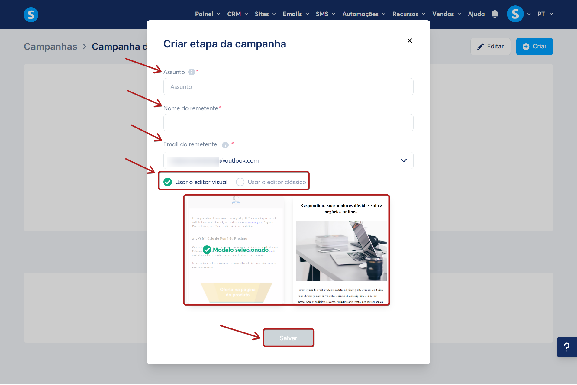 - Salvar rascunho: para salvar sua campanha de emails