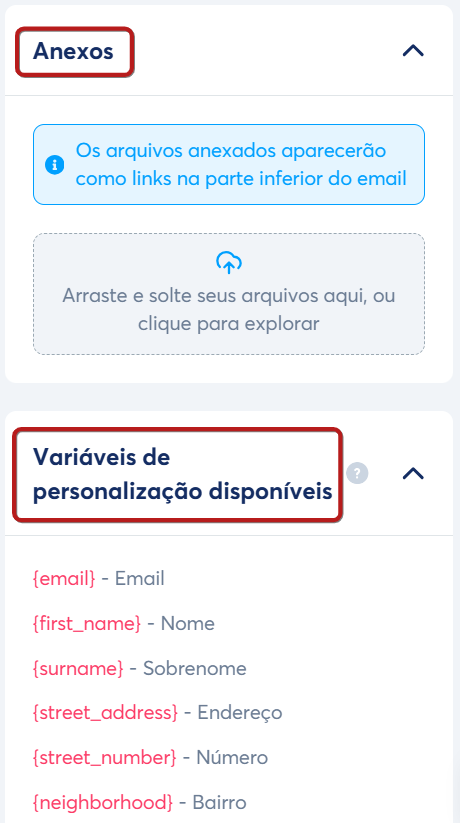 - Adicionar variáveis de personalização para substituir dados automaticamente