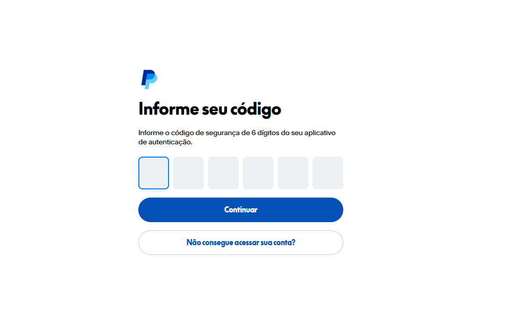 Se você tiver a autenticação de dois fatores (2FA) ativada em sua conta do PayPal, será solicitado que você verifique sua identidade inserindo um código de segurança enviado para seu telefone, email ou gerado através de um aplicativo de autenticação.