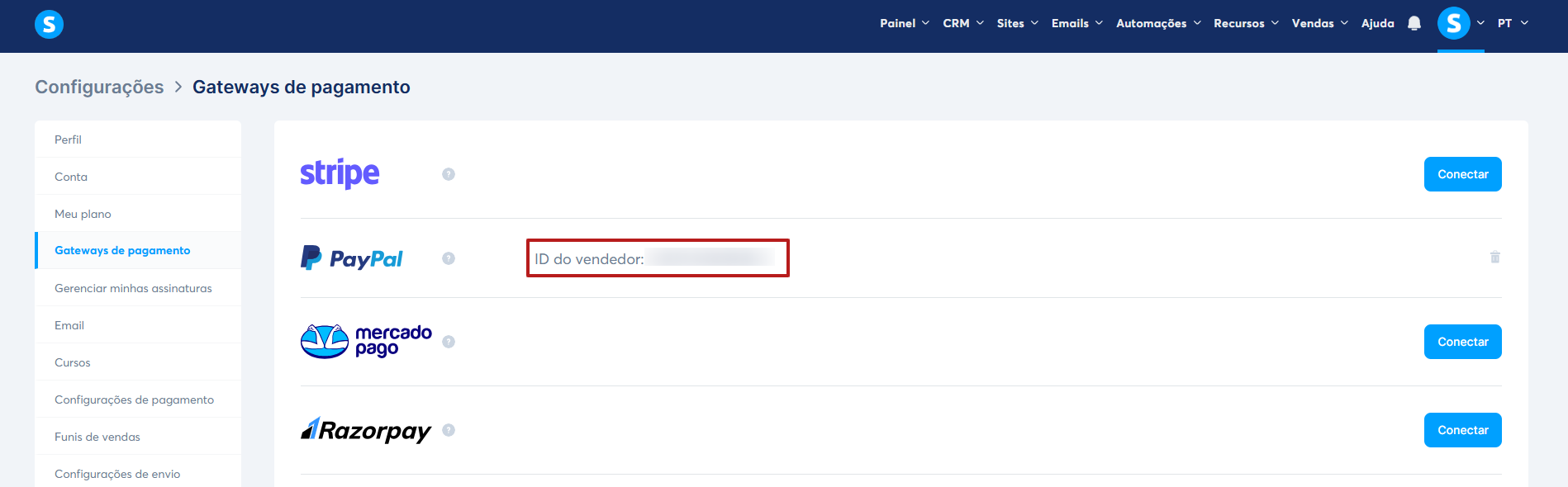 Esse processo pode demorar alguns segundos. Quando estiver concluído, você verá o seu ID de vendedor do PayPal.