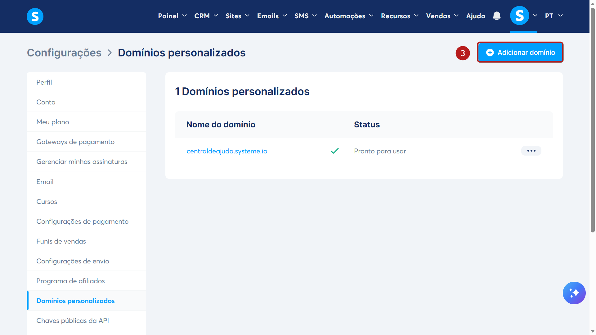 Neste artigo, você vai aprender como conectar seu domínio raiz à systeme.io.