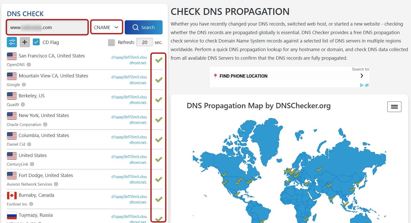2.3. Depois que os dois registros CNAME forem adicionados à zona DNS do seu domínio, você pode verificar os registros DNS para confirmar as alterações, acessando este site:
