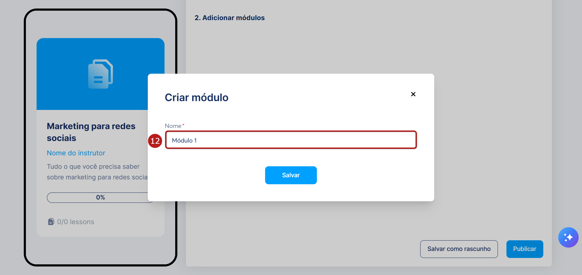 No pop-up, defina o nome do módulo e clique em Salvar (12).